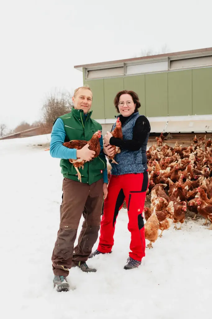 Viele Jahre war unser Hof ein klassischer Milchviehbetrieb. Vor einigen Jahren haben wir ihn mit der Hühnerhaltung gezielt weiterentwickelt und ein zweites Standbein aufgebaut. Dabei setzen wir auf eine moderne, tiergerechte Haltung mit Mobilstall, viel Auslauf und hochwertigem Futter.